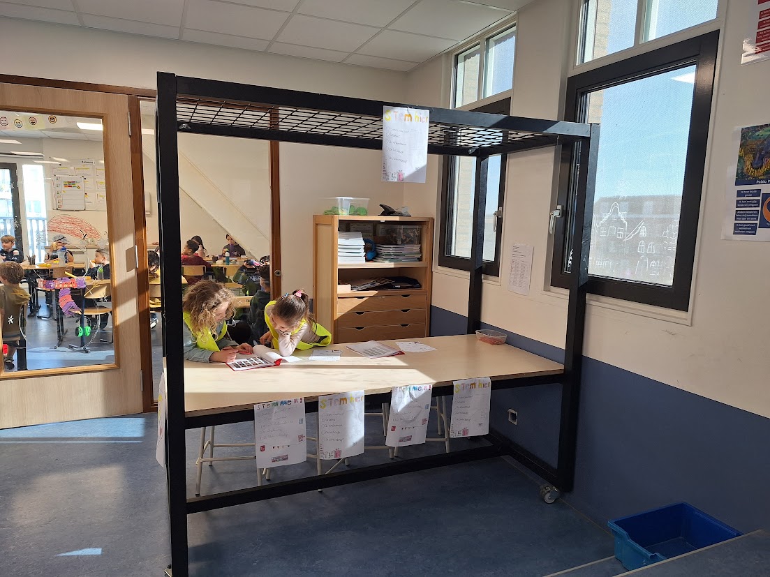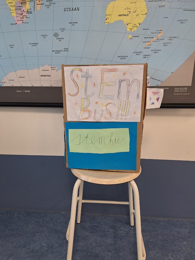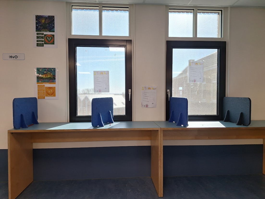 De hele school was betrokken bij het proces. De ene groep maakte de stembus, de andere de stembiljetten en leerlingen zorgden ook voor duidelijke bewegwijzering door de school. En alsof dat nog niet genoeg was, bemande groep 4 de twee stembureaus die verspreid door het gebouw staan.